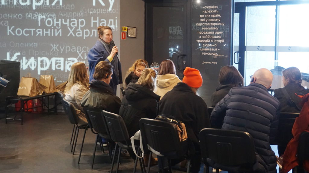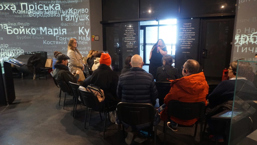 Про виклики, з якими стикається музей сьогодні, про забезпечення безперервної роботи, про збереження фондів, актуалізацію теми Голодомору 1932–1933 років у сучасному контексті та про майбутні напрямки роботи з гостями поспілкувалися генеральна директорка музею Леся Гасиджак, заступниця генерального директора Ганна Сокиріна, заступниця генерального директора Ольга Мельник, та головна зберігачка фондів Марина Принь.
