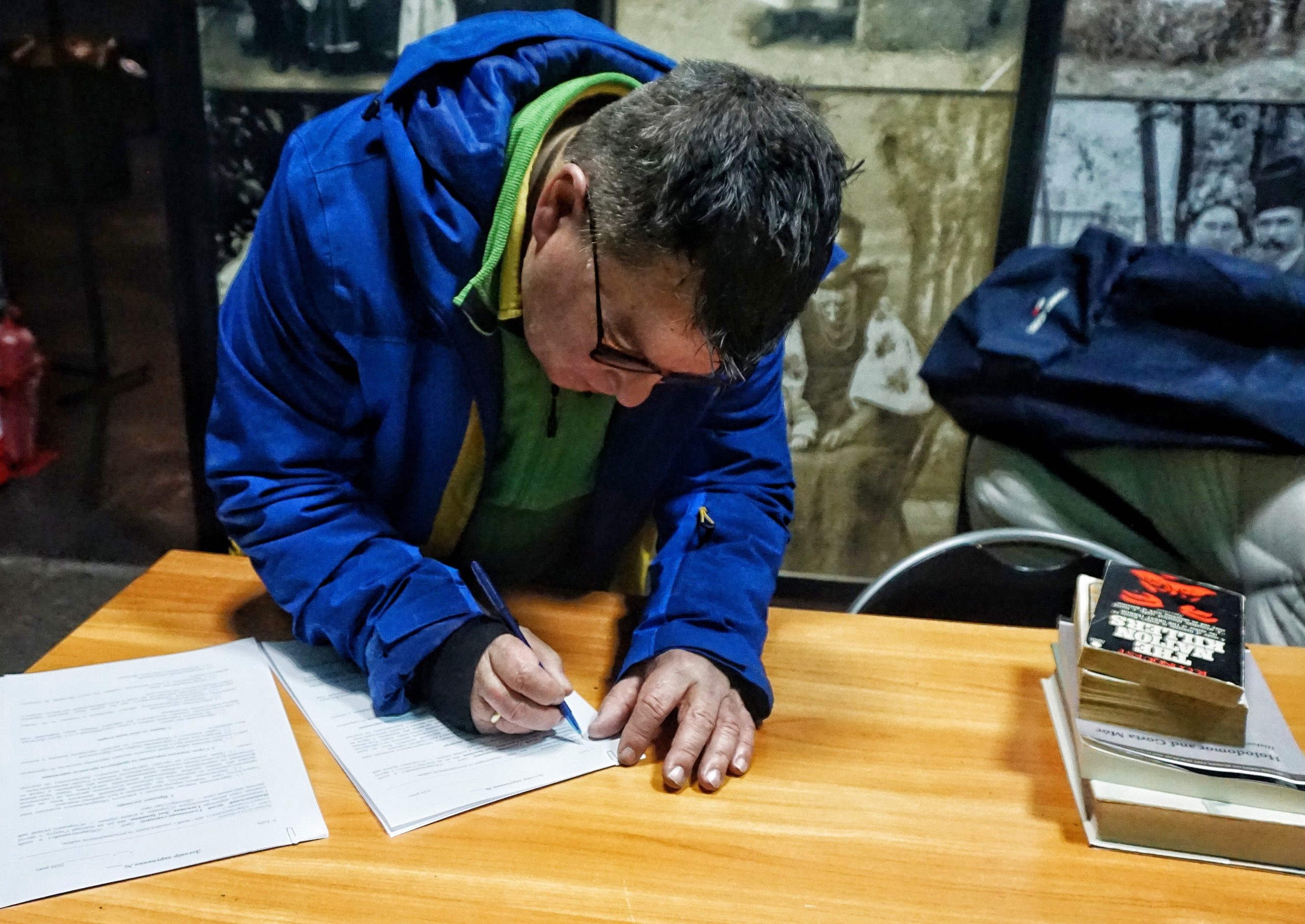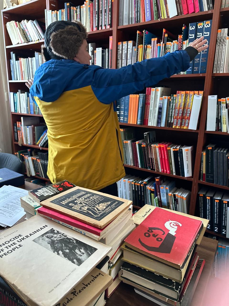 Гостя зустріли заступник генерального директора Ганна Сокиріна та завідувачка бібліотекою Ольга Пацеля. Після підписання документів про передачу книжок Тарасу Кузю показали музейну книгозбірню та провели невелику екскурсію.