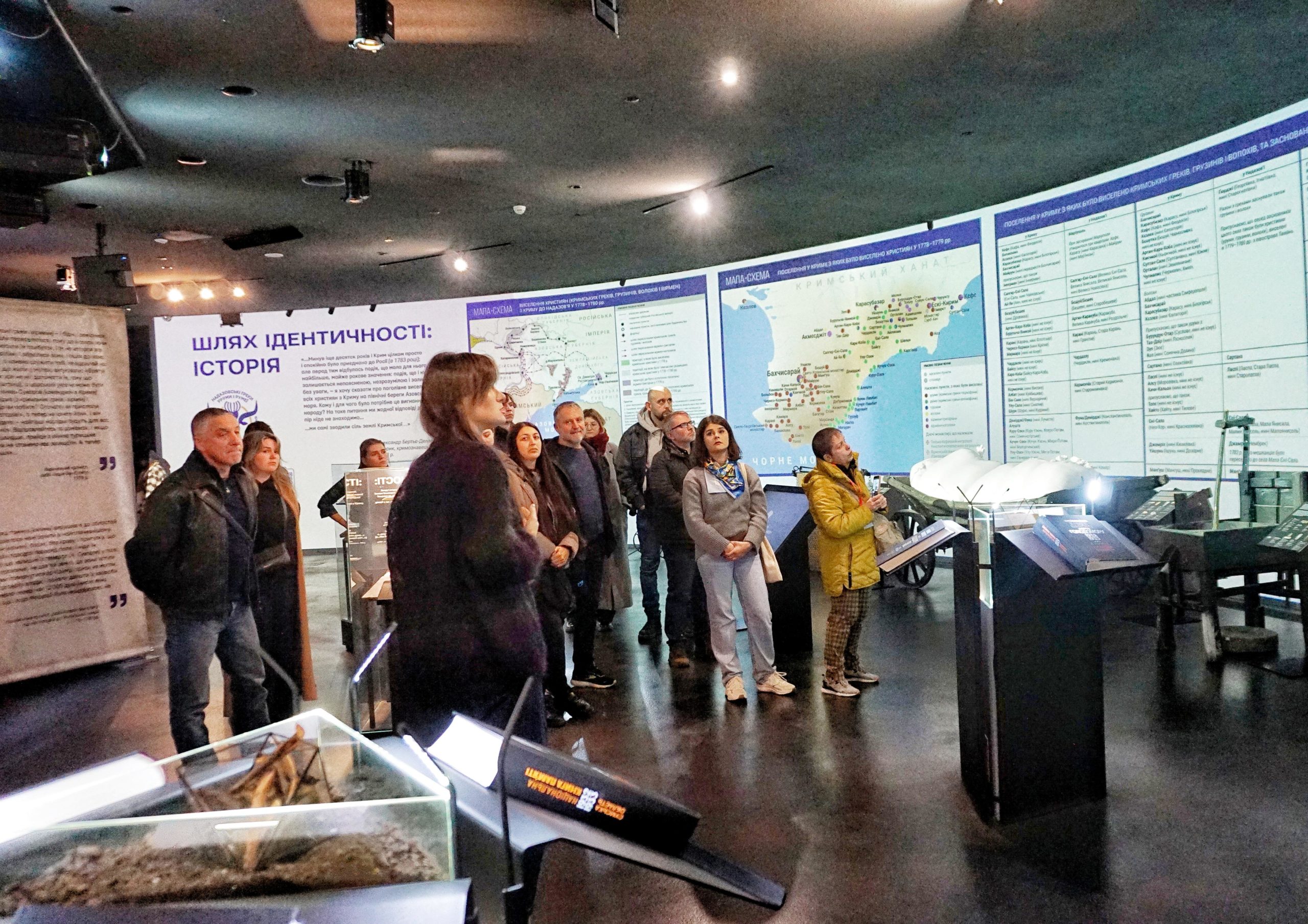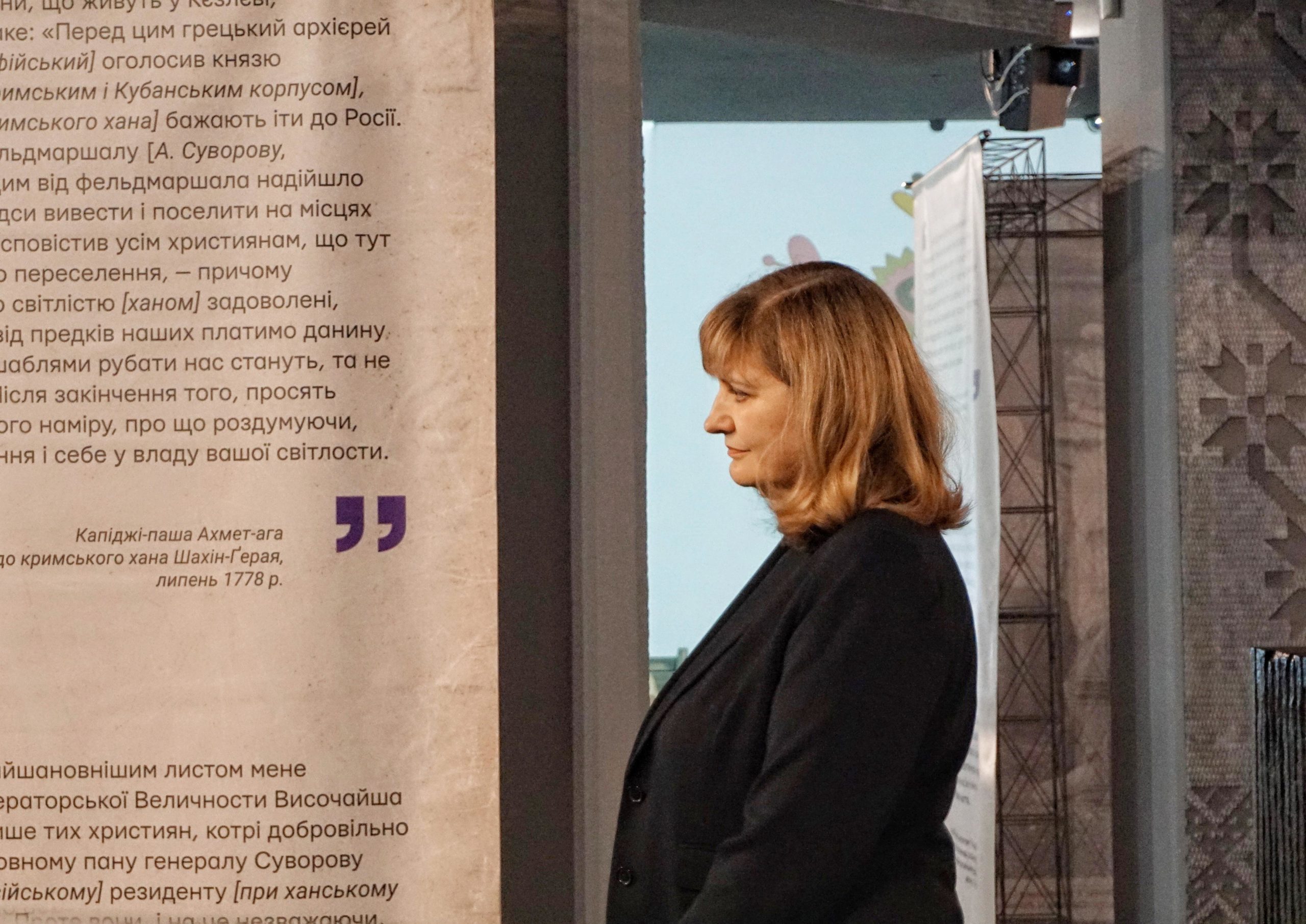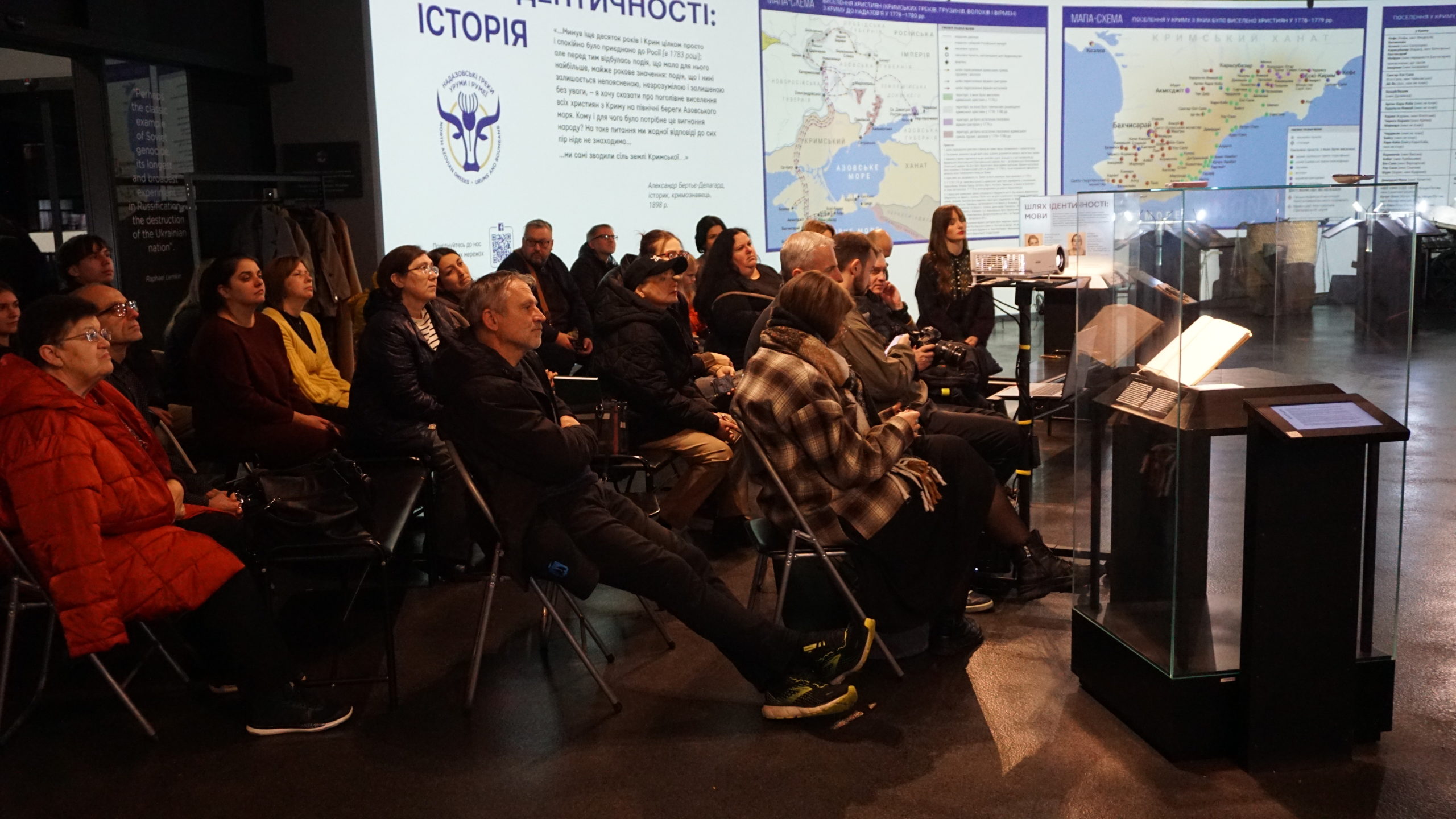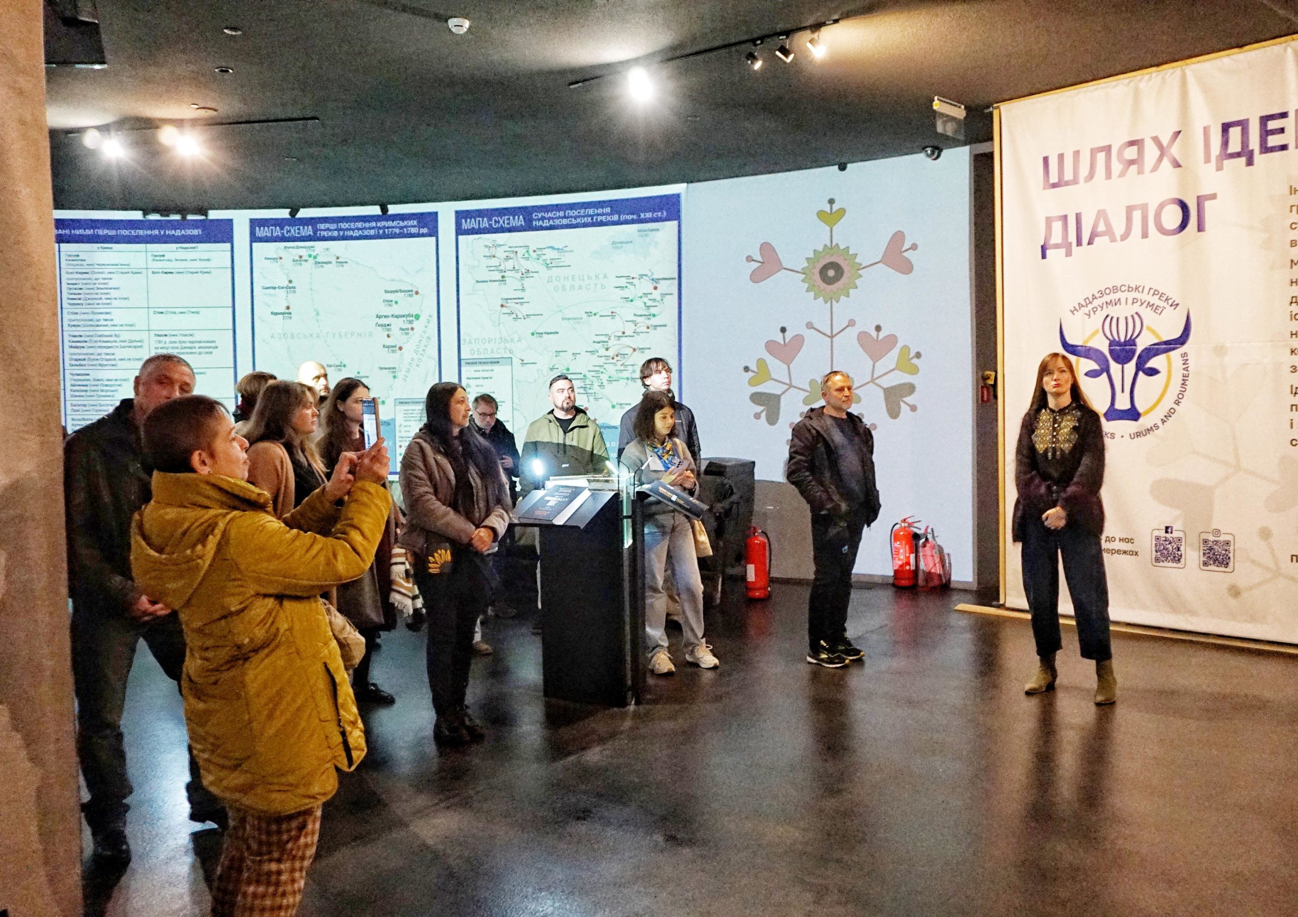 Після закінчення лекції наші гості змогли прослухати оглядову екскурсію виставкою «Надазовські греки: шлях ідентичності», яку провела Ольга Цуприкова, співзасновниця та голова ГО «Надазовські греки».