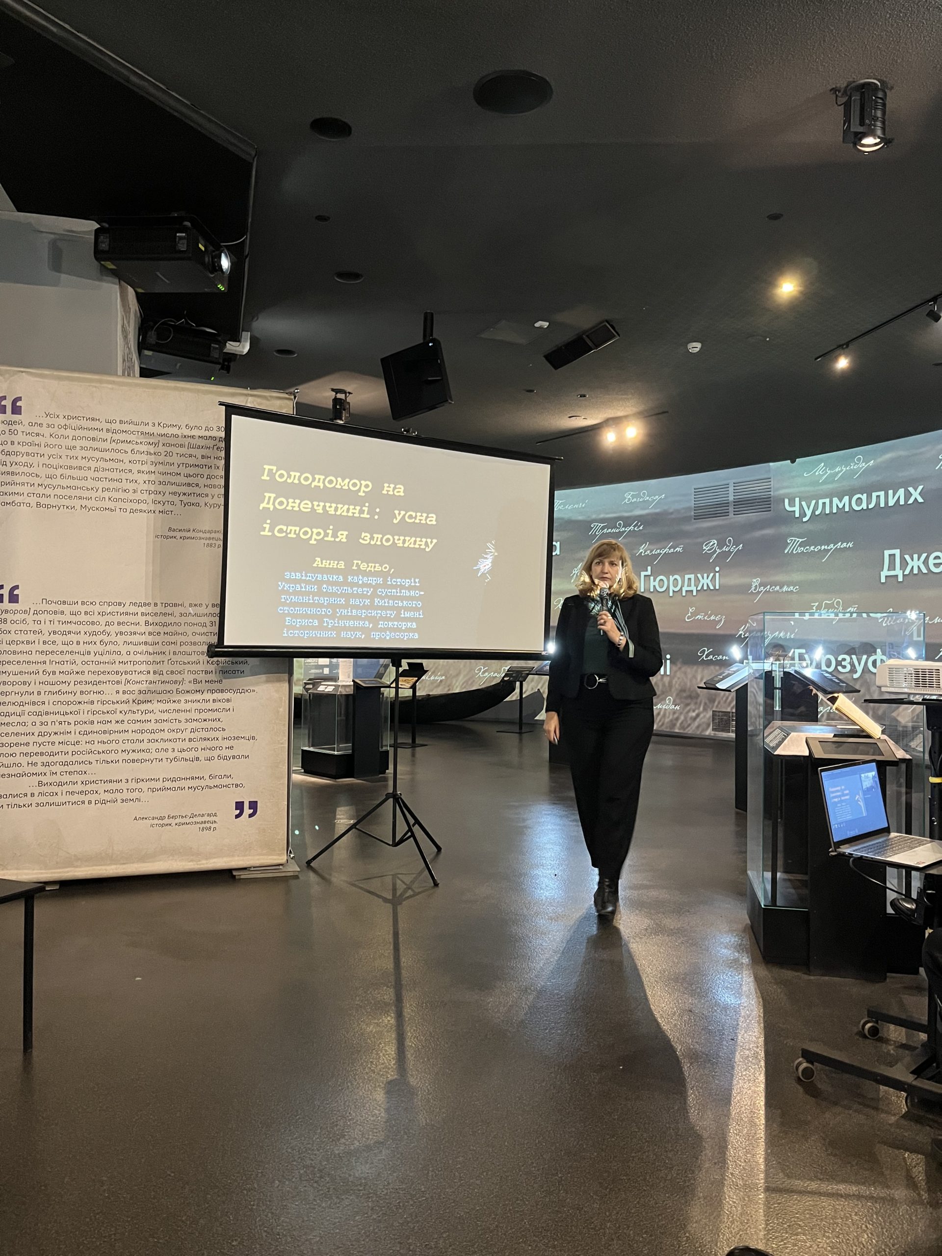 У суботу, 25 жовтня, в Музеї Голодомору відбулася лекція «Голодомор на Донеччині: усна історія злочину», яку підготувала та провела Анна Гедьо, завідувачка кафедри історії України, докторка історичних наук, професорка Київського столичного університету імені Бориса Грінченка. Захід пройшов у рамках мультимедійної виставки «Надазовські греки: шлях ідентичності».